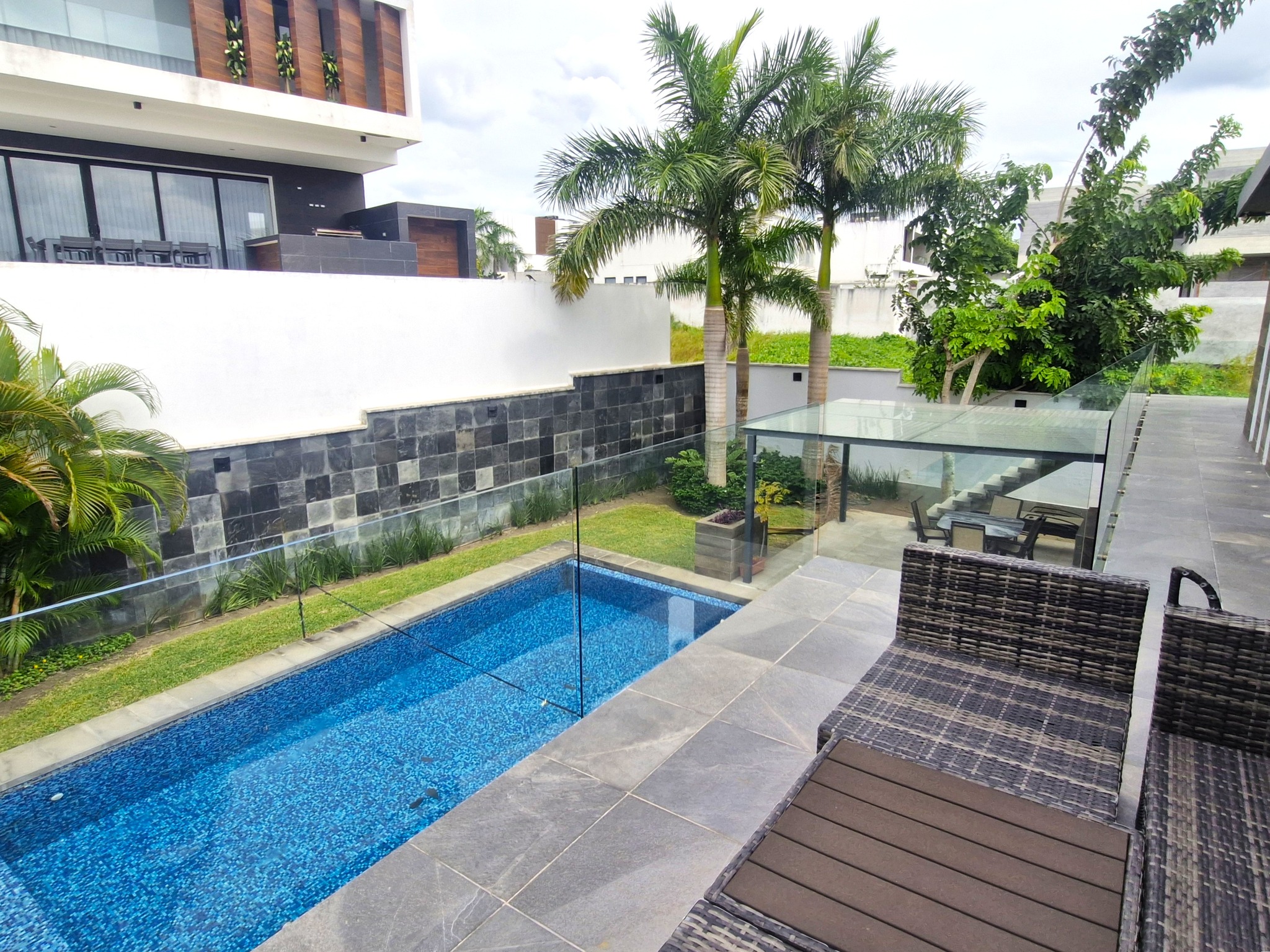 -Jardín con terraza, alberca y baño