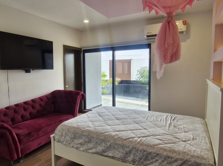 -Recámara principal con vestidor, baño y terraza con acceso directo al jardín.